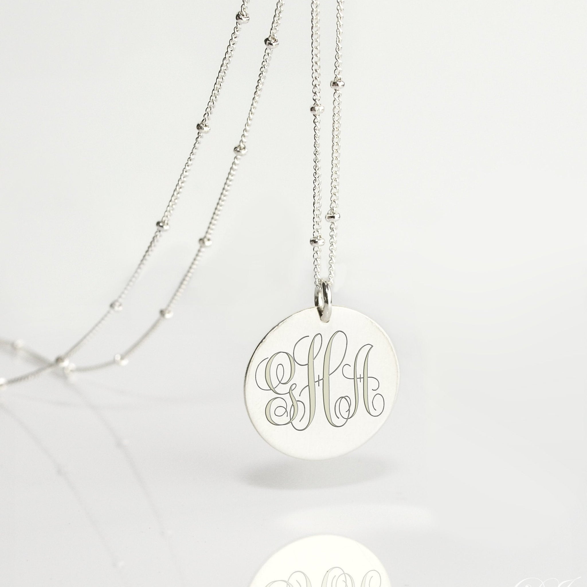 Elevate your everyday style with this Personalized Swirly Monogram Necklace, beautifully engraved with your custom three-letter initials in an elegant script. This timeless disc pendant is available in sterling silver or gold-filled and makes a heartfelt, meaningful gift for Mom, Grandma, a best friend, or your bridesmaids. Effortlessly stylish and deeply personal, it’s perfect for birthdays, Mother’s Day, anniversaries, and special moments worth celebrating.