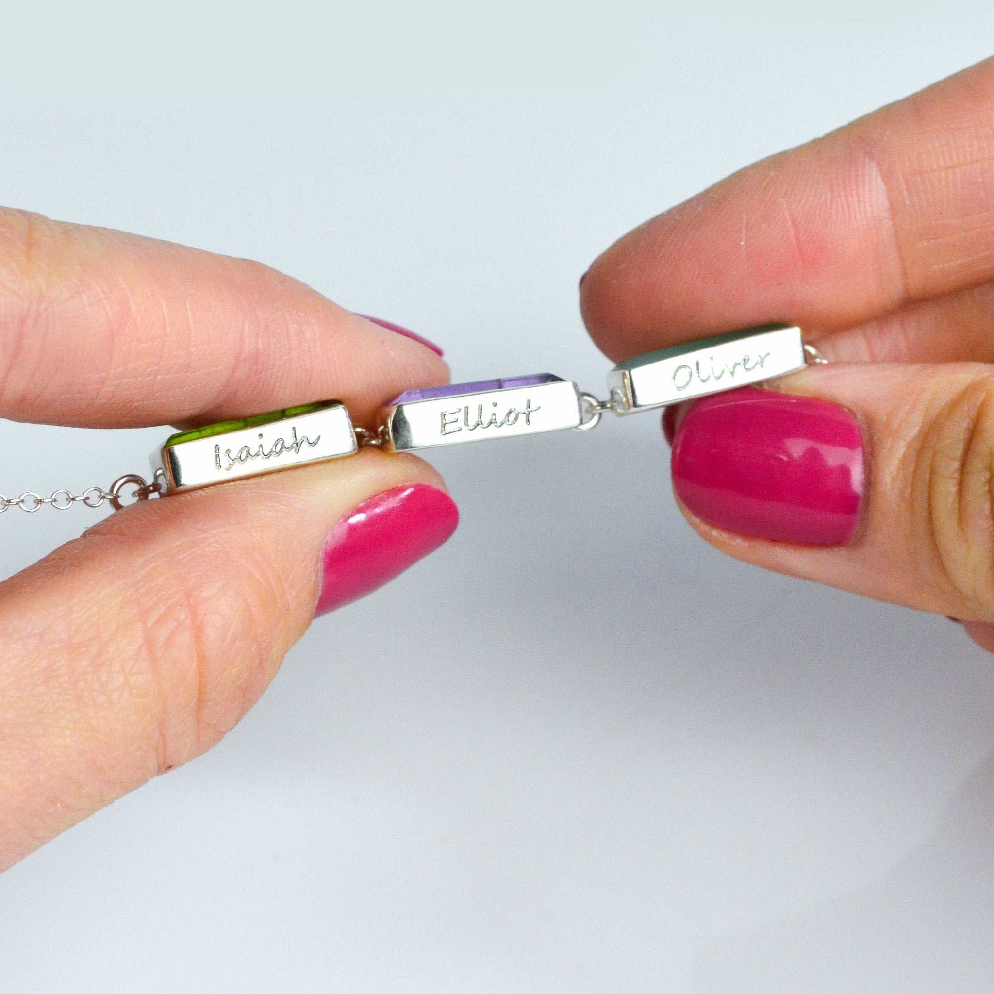 CELEBRATE THE LOVE OF FAMILY with our Adira Birthstone Baguette Bar Necklace, a personalized mom necklace featuring sparkling birthstones and custom engraving. Each gemstone is carefully bezel set in sterling silver, gold filled, or rose gold, with the option to add a hidden message for an extra sentimental touch. A meaningful keepsake she’ll treasure, this necklace is the perfect gift for moms, grandmothers, and loved ones on Mother’s Day, birthdays, or Christmas.