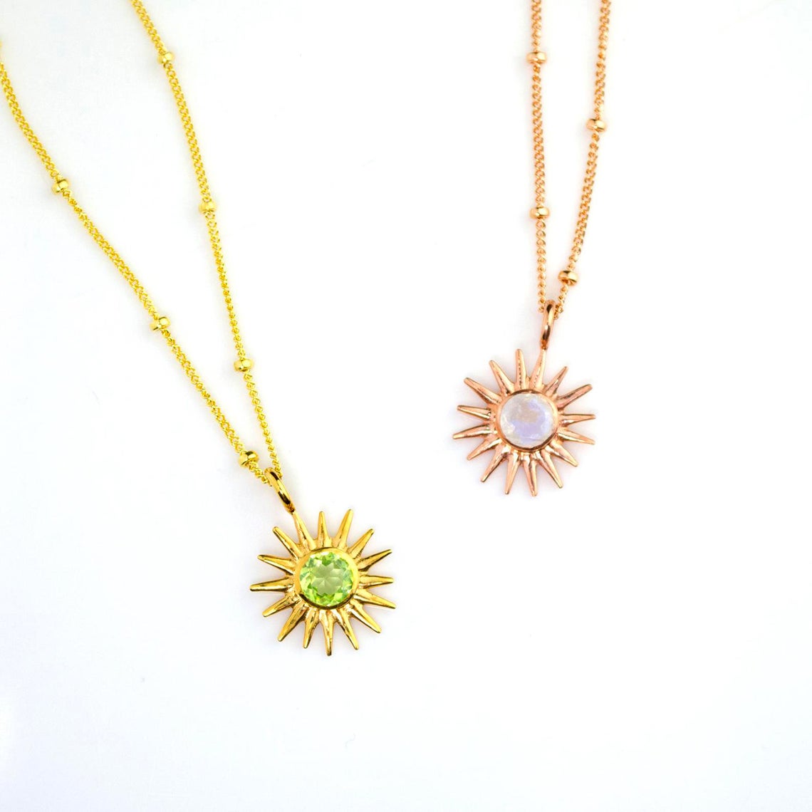 SHINE BRIGHT with our sunburst birthstone necklace, a celestial pendant designed for women who love meaningful jewelry. Featuring a sparkling 5mm gemstone framed in radiant rays, this necklace is perfect for birthdays, bridesmaids, or simply treating yourself. Available in gold, rose gold, or sterling silver, it’s a personalized piece that celebrates individuality, astrology, and the people you love — a timeless keepsake to wear close to your heart.
