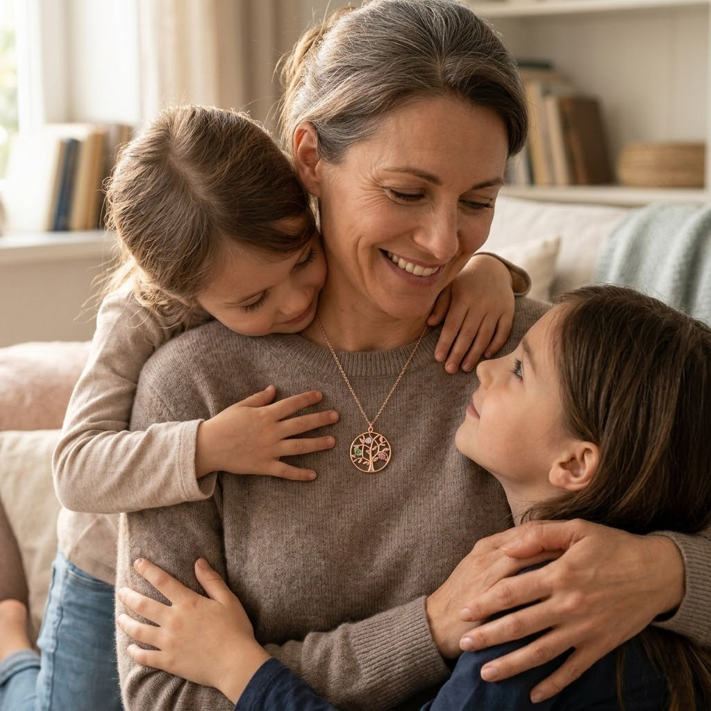 Celebrate the love of family with our custom birthstone mom necklace, featuring a delicate tree of life design adorned with sparkling birthstones. Each stone represents someone special, creating a meaningful keepsake that grows with your family.