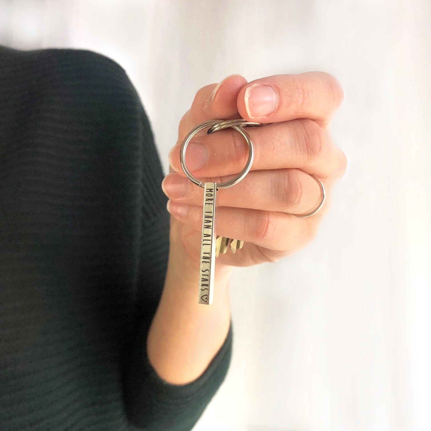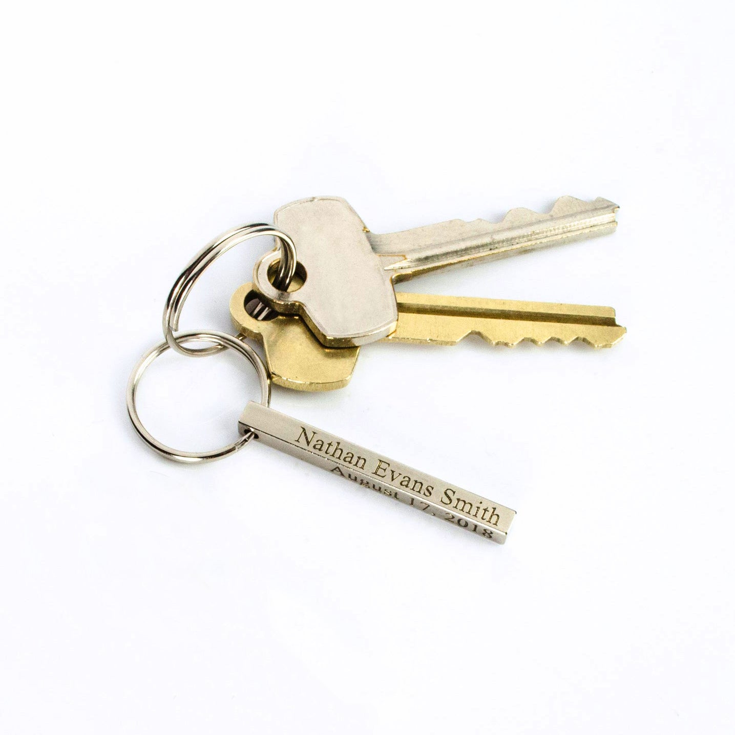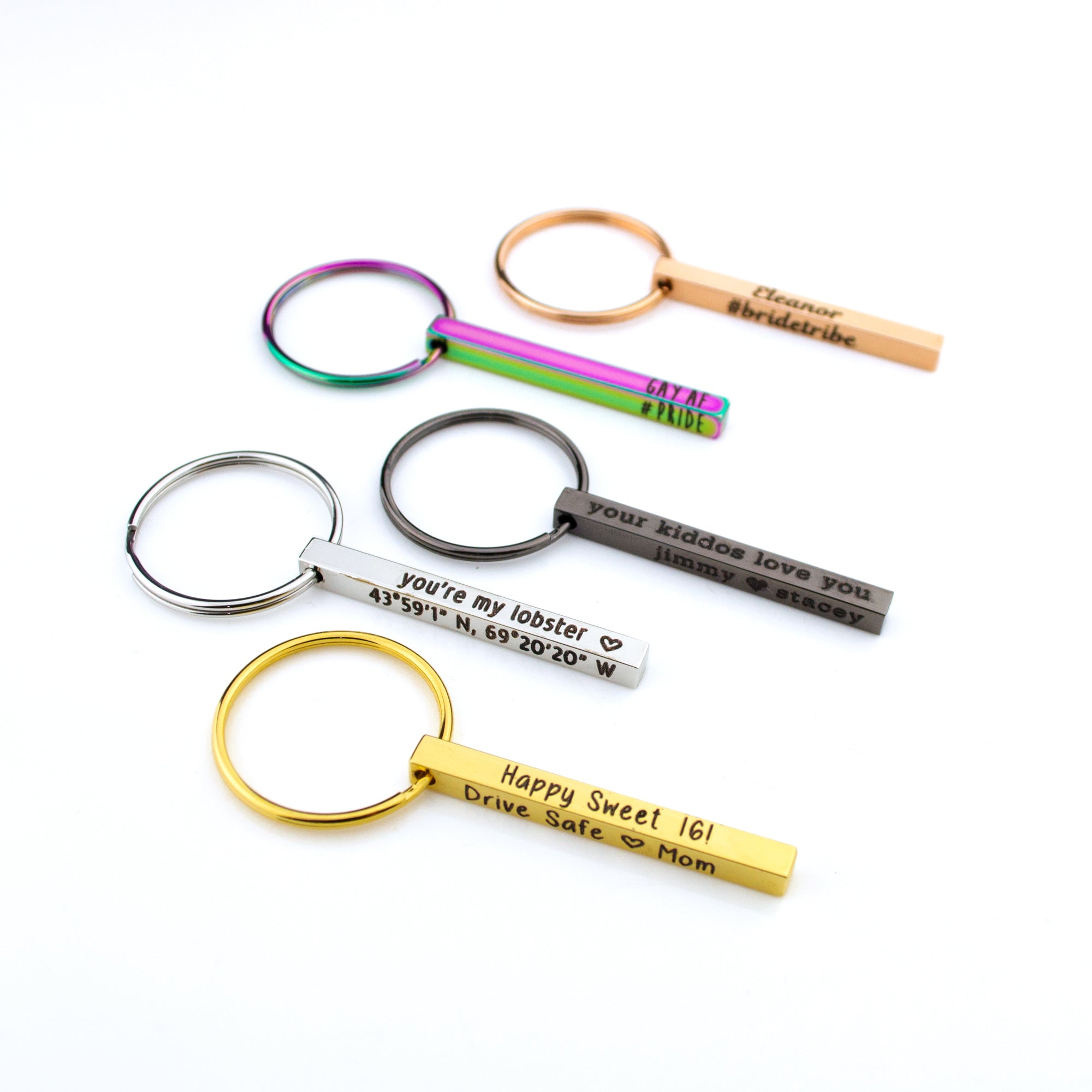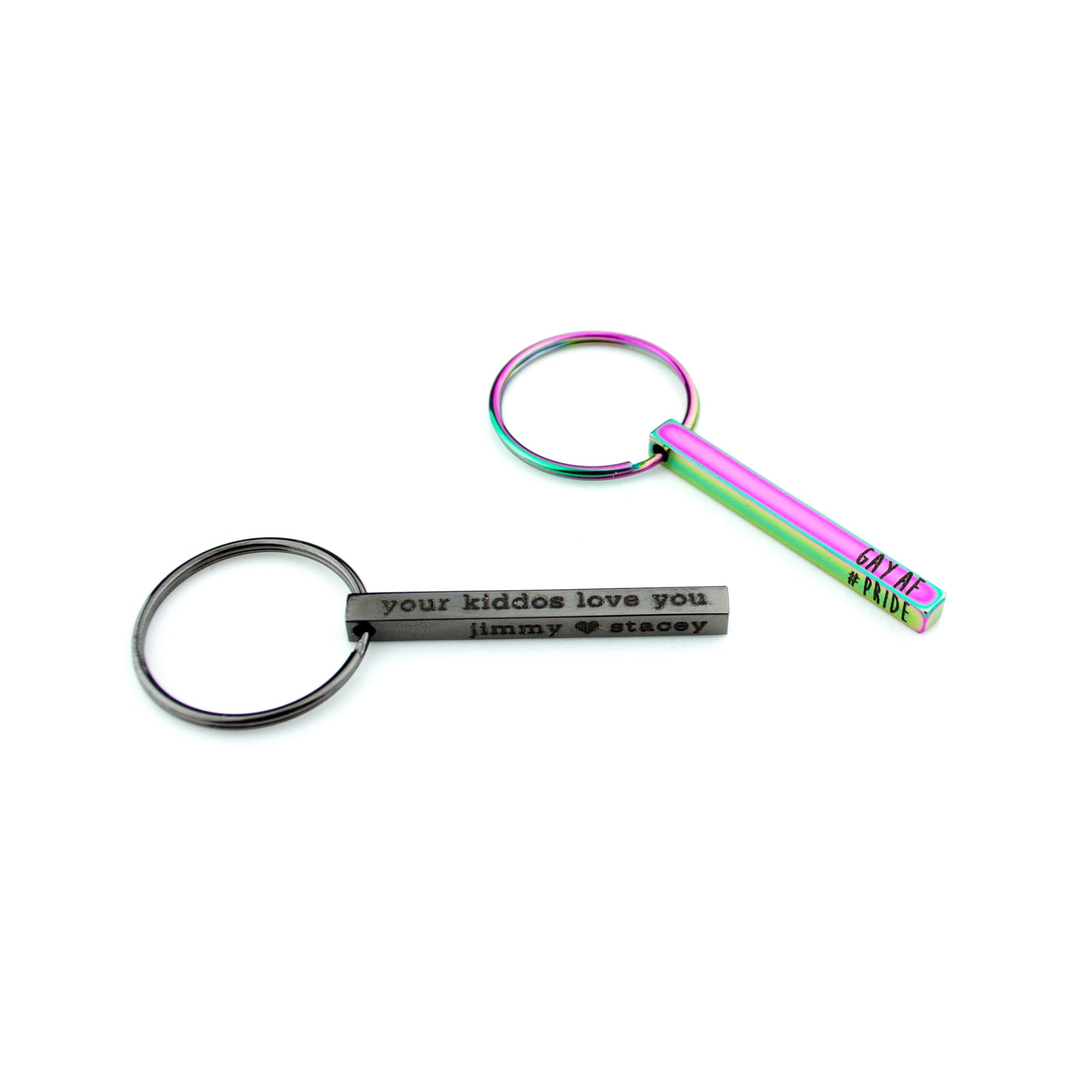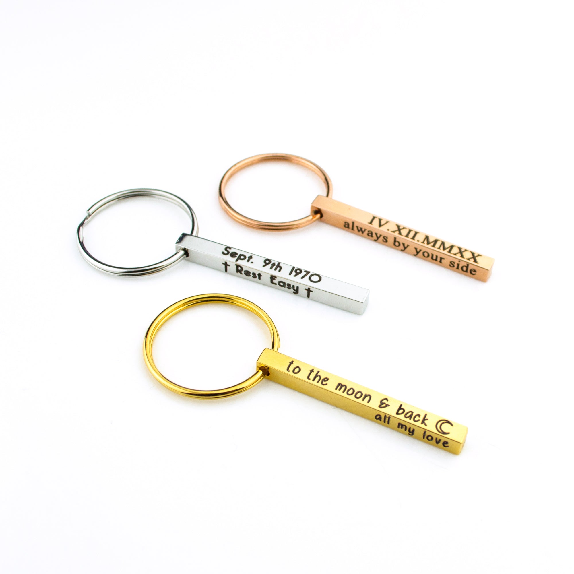 Meet our mini bar keychain—a dainty 3D stainless-steel bar you can engrave on up to four sides with names, dates, coordinates, or short messages. At 40 mm × 4 mm, it’s slimmer and lighter for pockets and purses yet still durable for daily use. Choose silver, gold, rose gold, black, or rainbow, and we’ll ship it gift-ready. A thoughtful everyday keepsake for anniversaries, new drivers, graduates, dads, groomsmen, and long-distance love.
