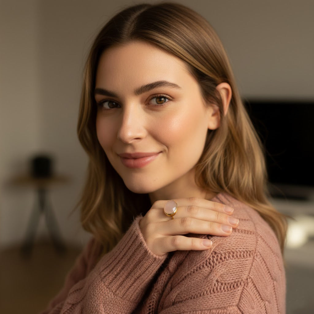 Soft Blush Gemstone in a Minimal Gold Setting